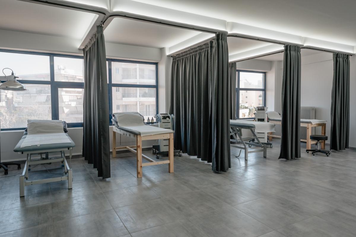 Ο χώρος έχει σχεδιαστεί εργονομικά από εξειδικευμένο αρχιτεκτονικό γραφείο, ώστε να προσφέρει ένα αισθητικά άρτιο και λειτουργικό περιβάλλον, όπου εξειδικευμένοι φυσικοθεραπευτές παρέχουν υψηλού επιπέδου υπηρεσίες αποκατάστασης.